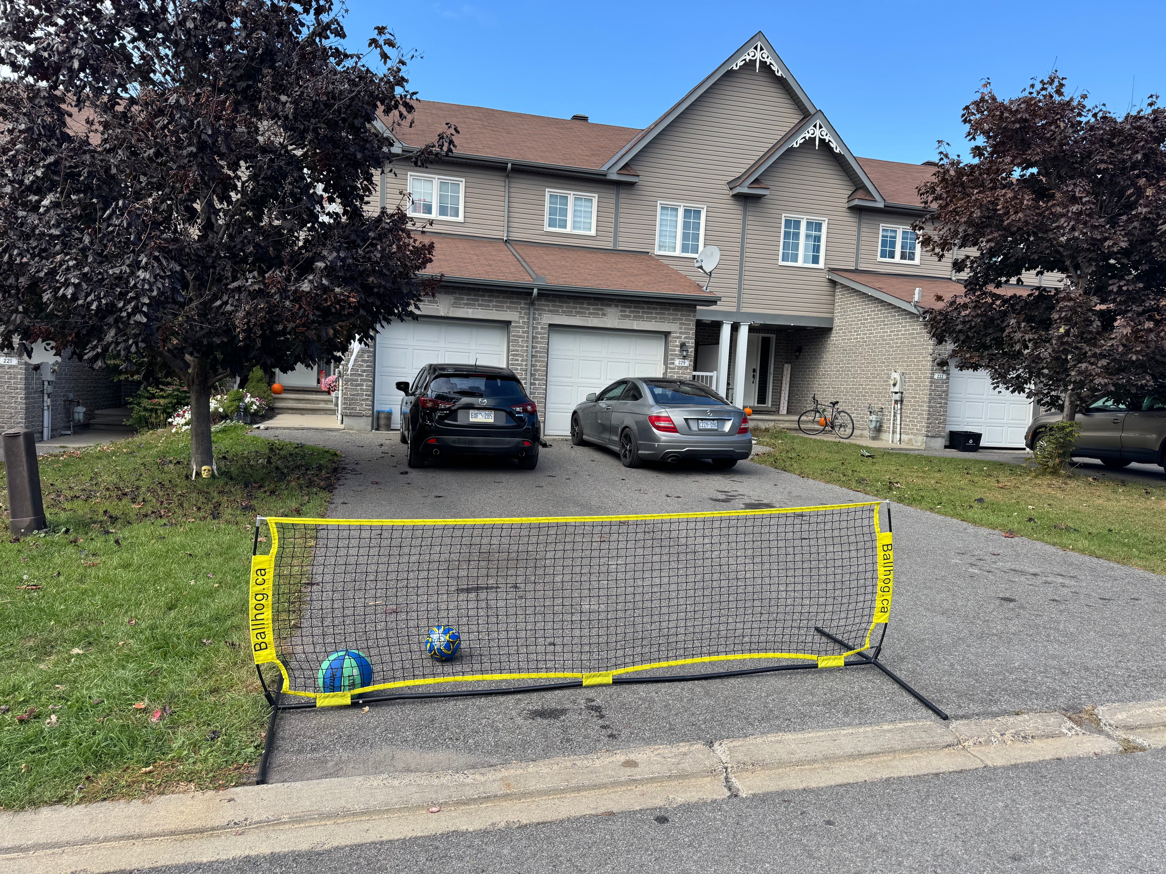 Ballhog is a driveway safety net designed to stop balls before they hit the street — and more importantly, stop kids from chasing after them. Built with a durable metal frame and bright visibility netting, Ballhog is patent pending and trusted by parents and child care professionals across Canada.